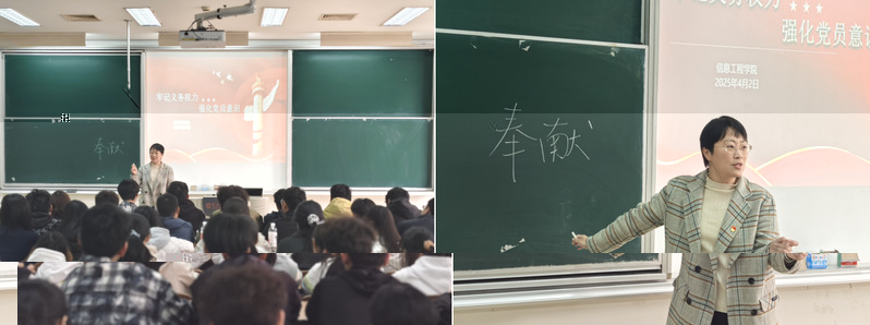 4月2日下午兩點,信息工程學院于主樓B202開展“牢記義務權力,強化黨員意識”專題黨課。本次黨課由院黨委副書記姜琳主講,全體入黨積極分子參加黨課。