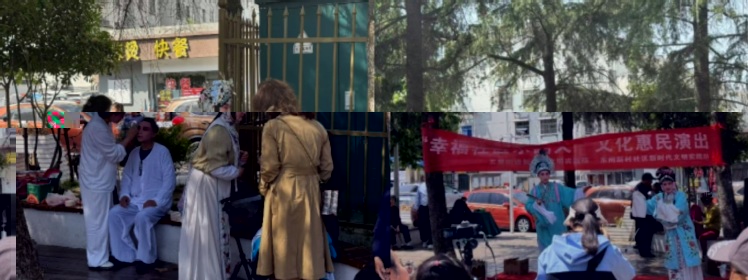 在觀衆們沉浸于精彩表演的同時,志願者們也在各自的崗位上忙碌着。他們穿梭于人群之中,用鏡頭記錄下淮劇演員們的精彩瞬間,并且積極參與劇情講解與戲曲知識問答。