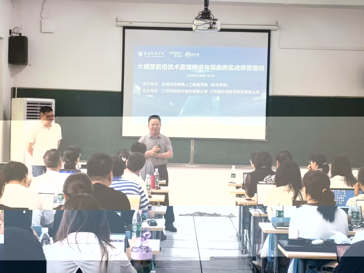 2025年6月28日,人工智能學院(軟件學院)聯合江蘇潤和軟件股份有限公司、江蘇潤開鴻數字科技有限公司舉辦的“2025年暑期AI大模型前沿技術原理精講與項目案例實戰師資培訓班”在通榆校區5号樓116教室隆重開班。校黨委常委、副校長畢鳳珊出席開班儀式并緻辭,學院領導班子全體成員、各專業系專任教師、商學院部分相關專業教師及企業代表共同參加本次活動。